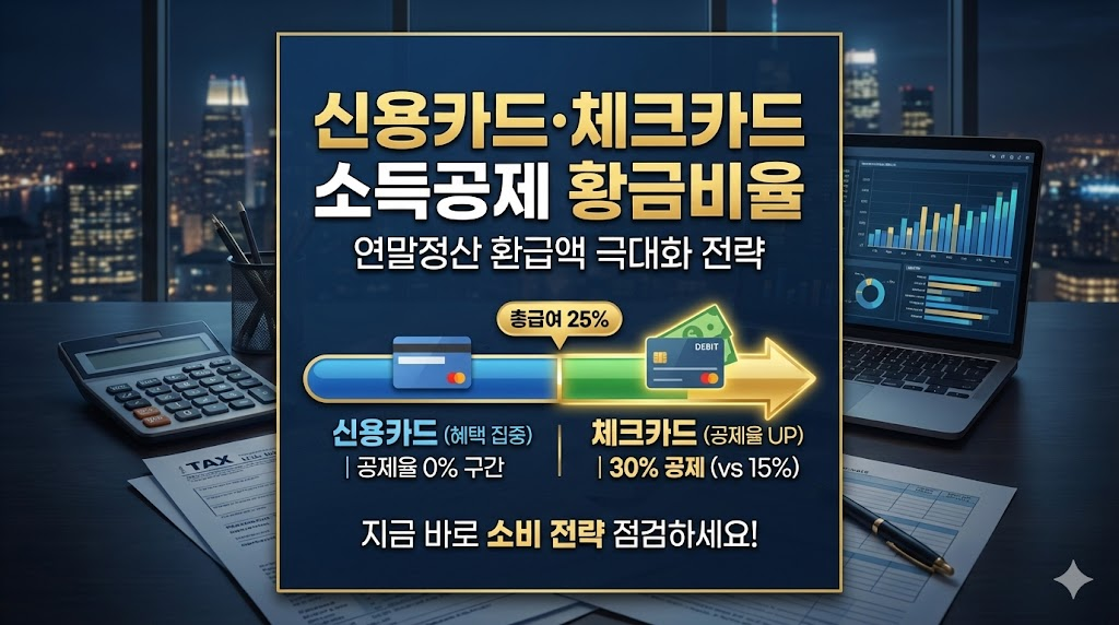 하지만 국세청의 세법 로직을 정확히 이해한다면, 두 카드의 장점만을 취해 환급액을 극대화하는 '황금비율'이 존재한다는 것을 알 수 있습니다. 본 칼럼에서는 복잡해 보이는 신용카드 체크카드 소득공제의 계산 구조를 전문가적 관점에서 해부하고, 총급여에 따른 최적의 소비 포트폴리오를 제시하여 여러분의 세후 소득을 지키는 실질적인 방법을 안내해 드리겠습니다.